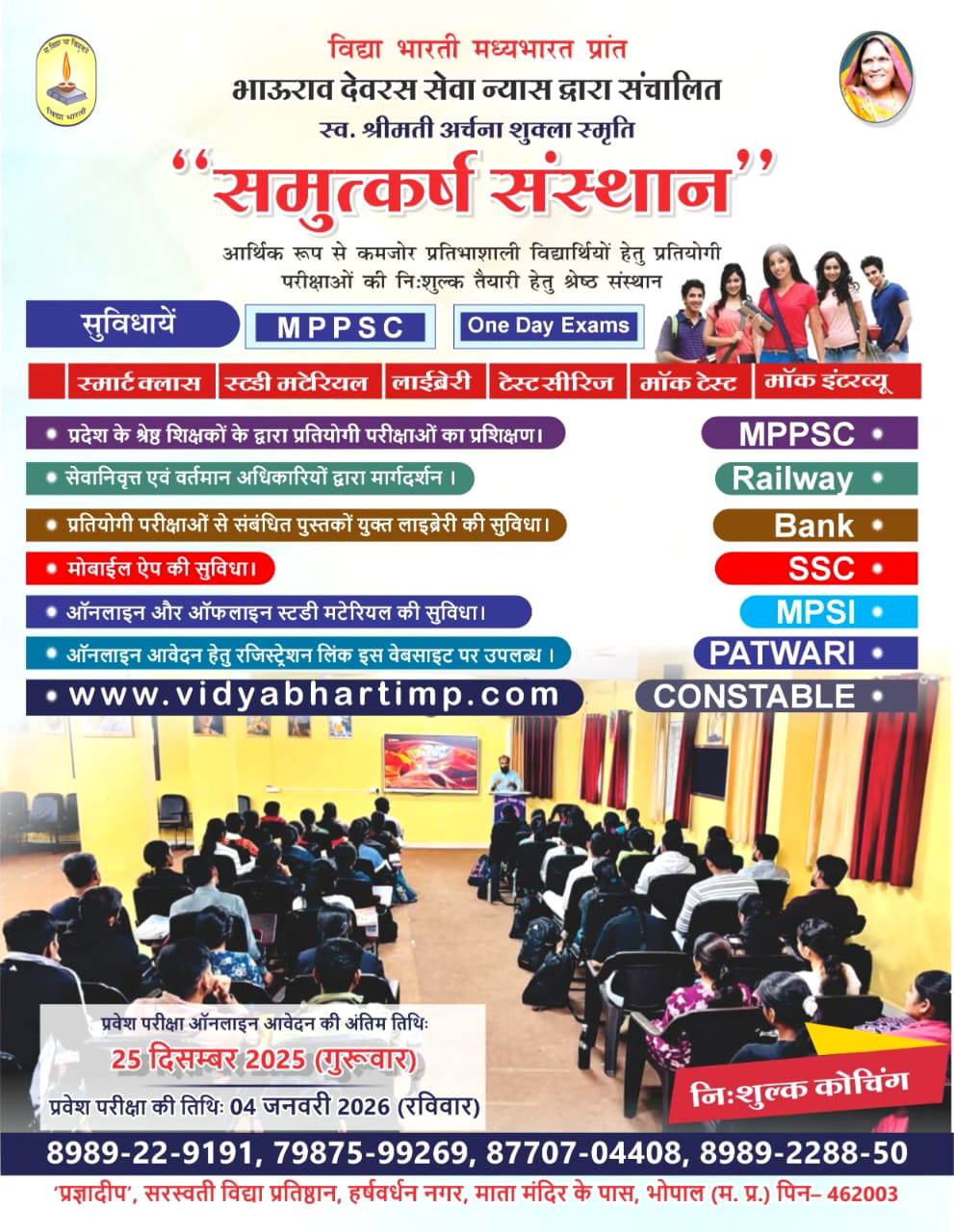 समुत्कर्ष संस्थान द्वारा प्रवेश परीक्षा 2026 के आवेदन हेतु विज्ञापन